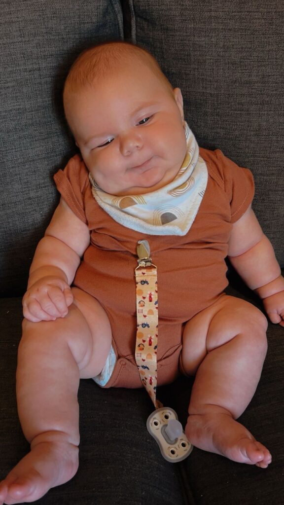 In just a few short months, Gunner’s gone from newborn to chunky legend, sitting at 22.5 pounds by four months old. He’s strong, thriving, and full of personality — the kind of baby everyone wants to cuddle.